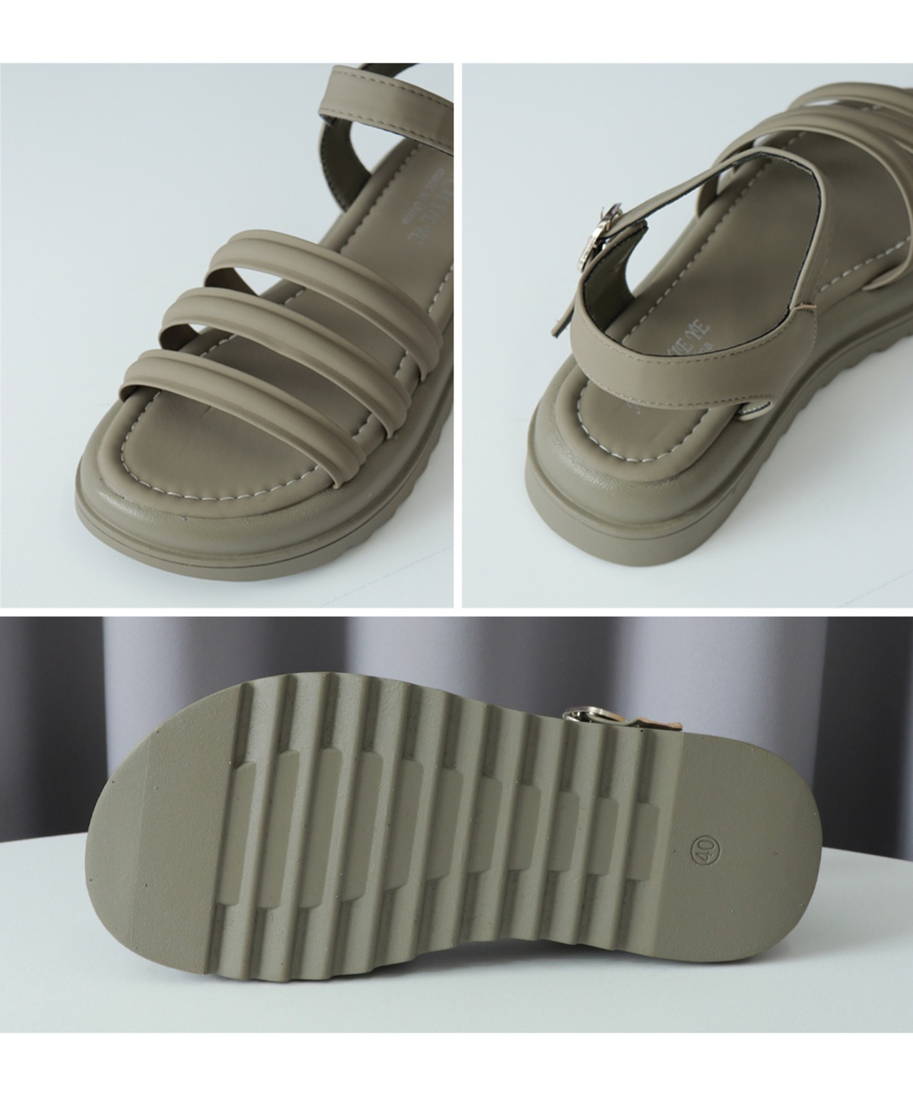 しっかりとした厚みのあるフラットソールで安定感をプラスして歩きやすい。