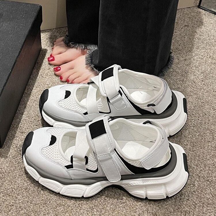 レディース スニーカーサンダル ベルト マジックテープ 軽量 スニーカー メッシュ 白 黒