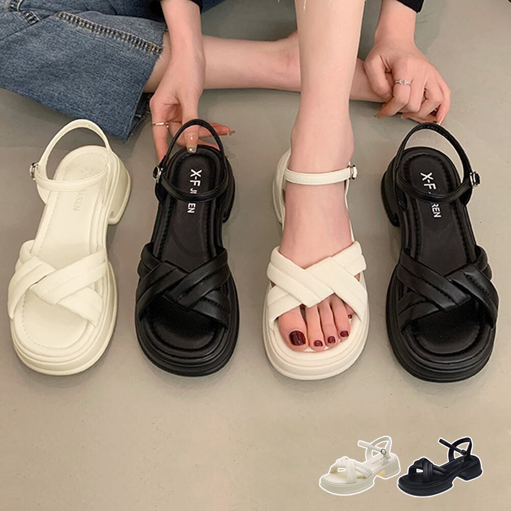 サマーサンダル 厚底ソール ボリューム 太ヒール クロスストラップ 歩きやすい 疲れない 人気 カジュアル 大人可愛い靴