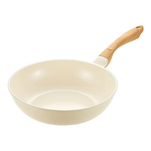 ・お料理が映えるおしゃれなアイボリーカラー。ハンドルはシックな木目調。